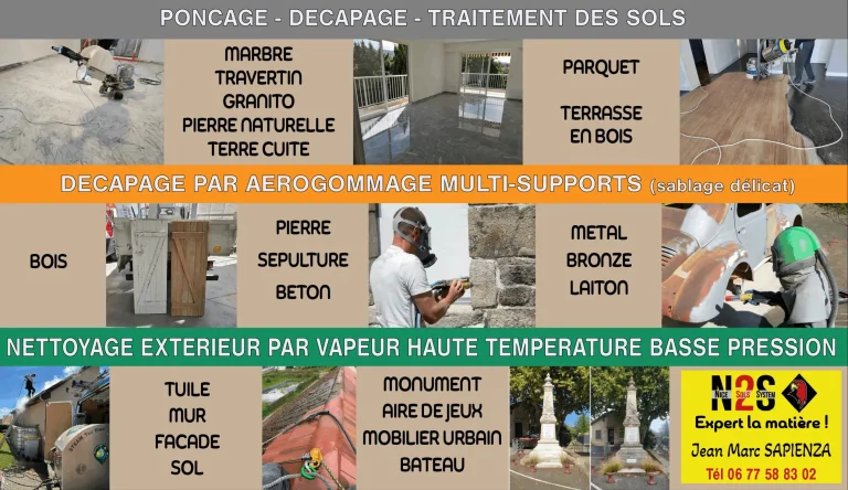Nice Sols System, entreprise familiale niçoise, est votre spécialiste du nettoyage, ponçage, décapage et traitement de tous types de supports et matériaux.