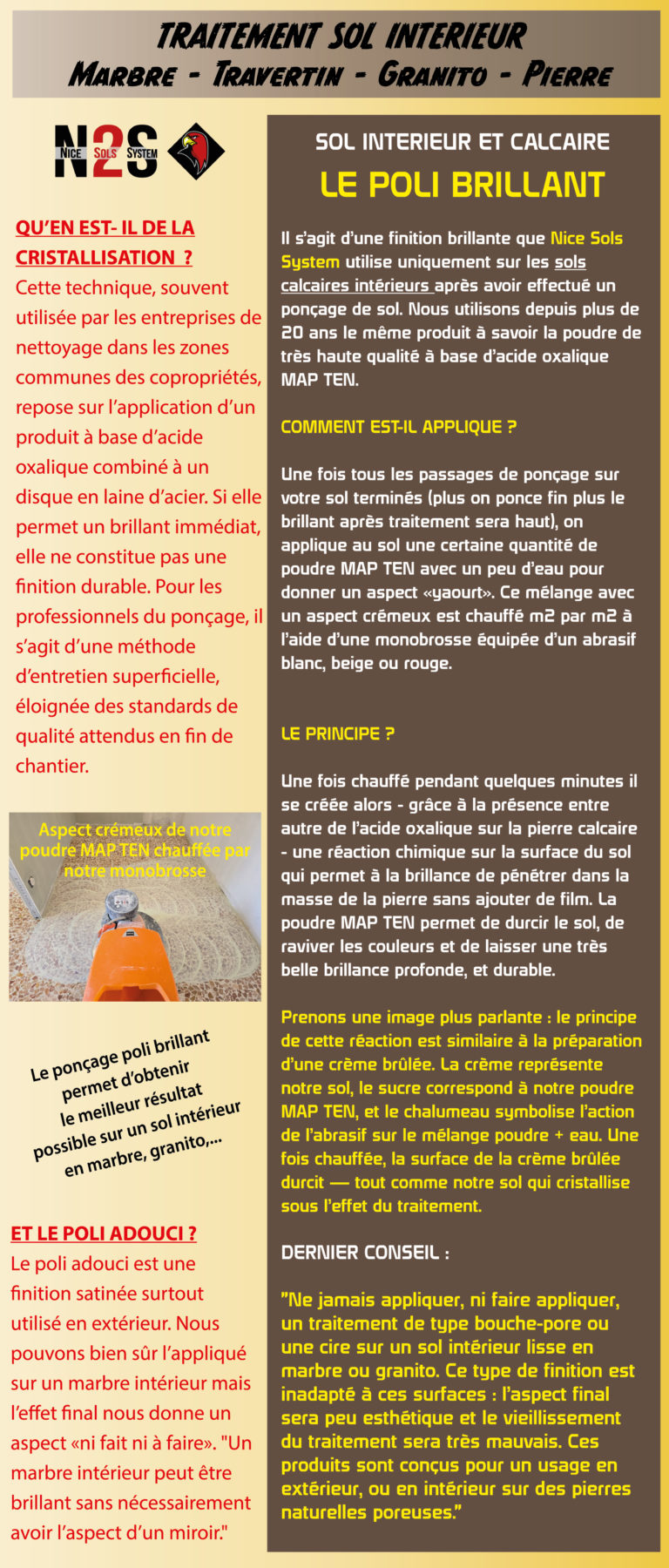 Marbre, Travertin, Granito : Poli brillant et poli adouci