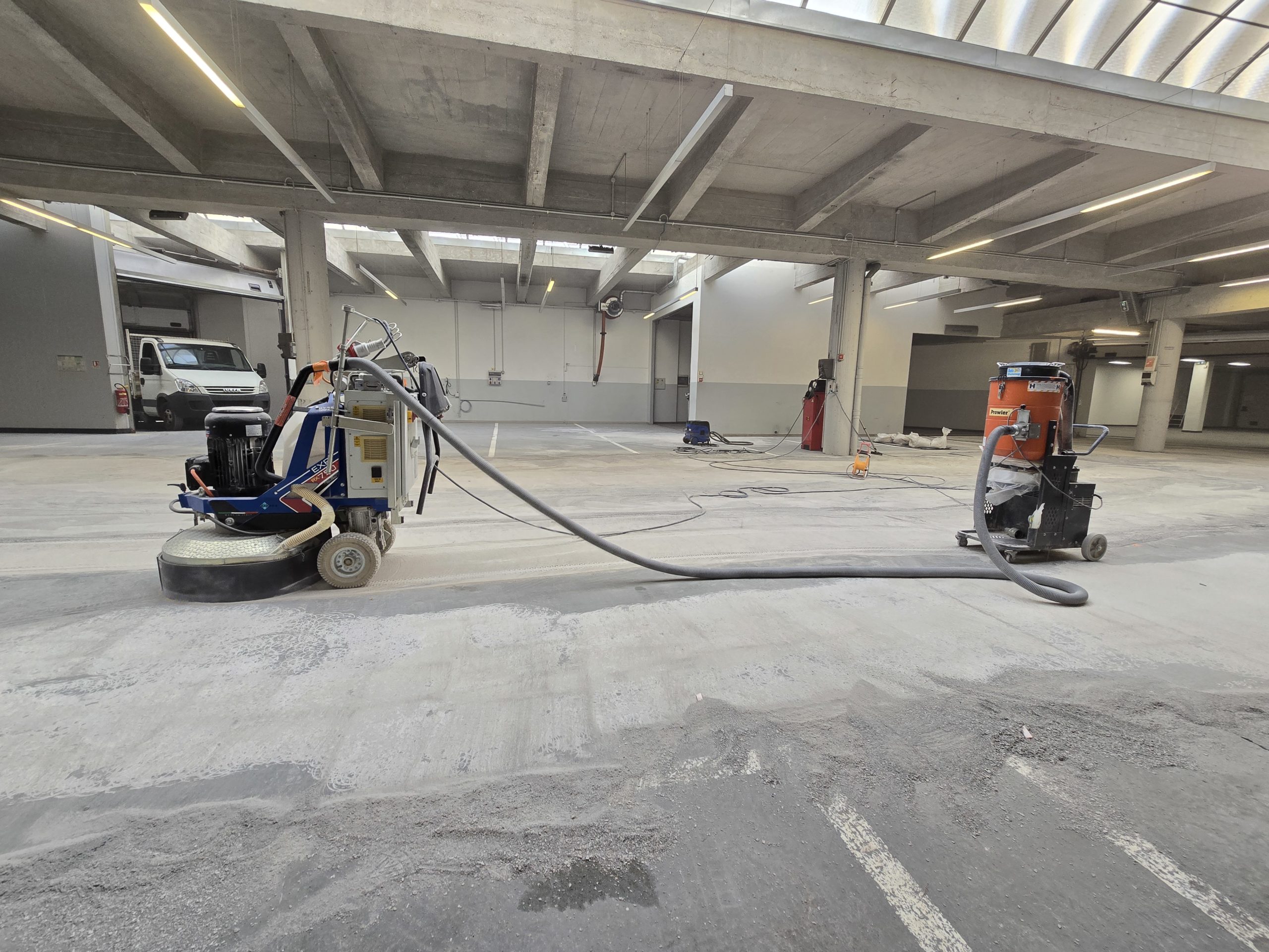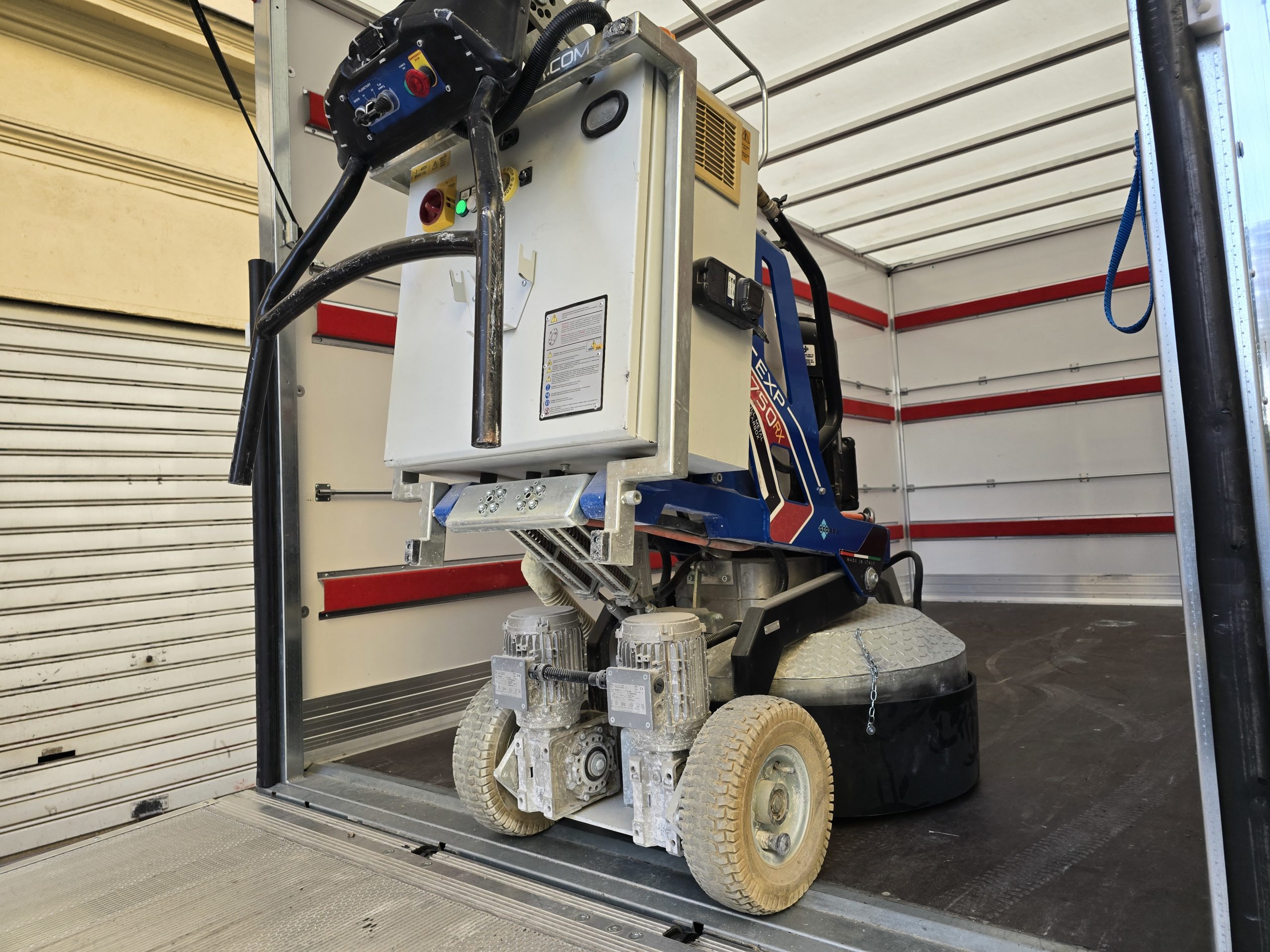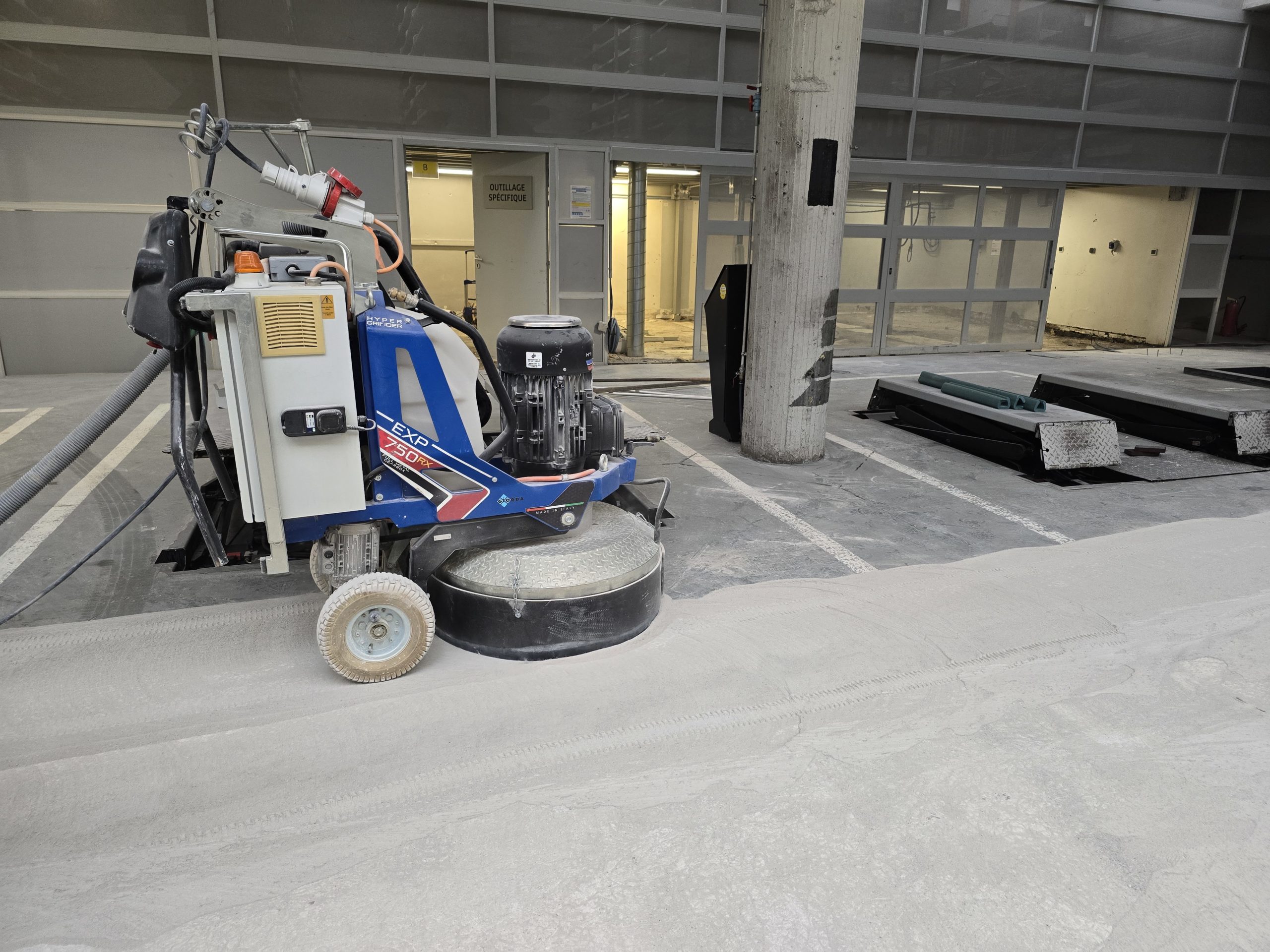 Pour nos chantiers de ponçage de béton ou d’enlévement de peinture en résine sur sol, nous avons choisi la Ponceuse (20 cv) KLINDEX EXPANDER 750 avec télécommande. Connectée à un puissant aspirateur poussière cette machine « de guerre » offre un travail impressionnant sur des surfaces importantes. Elle « avale » les mètres carrés sans effort pour l’opérateur car elle se manipule par une télécommande.